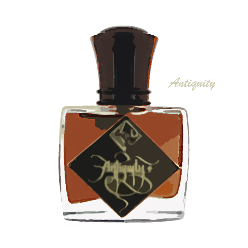 Antiquity最吸引我的是其中微辛辣的脂香,當我把沾有香水的試紙放桌上,著手工作時有陣陣的香氣飄來,有點像粉紅胡椒加上琥珀的香味,帶著一點點粉甜和苦味,香味濃密且脂稠,特別抓人鼻子,害我無法認真工作,一直被它的香味吸引。當近聞Antiquity時,那個幾近膏感的動物脂香則更為突出,它是暗黑、深沈、微騒且有點華麗的,其實我仔細聞也有滿多廣藿香,但它和這個動物脂香和皮革融合得非常緊密,使這個動物感的脂香帶著古老的藥感和大自然氣息。我原本有點擔心的桃醛好險並沒那麼明顯,它比較像是一束光影,為整體帶來明亮度與鮮活的果氣,但並不太有桃子味。康乃馨和橡木苔也是比較模糊的存在,仔細找可能可以聞到,但形體並不是太確切,但它們細膩且稱職地點綴上一抹紅與一點綠。