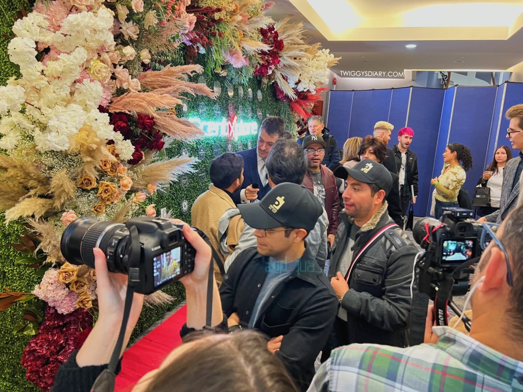 活動下午一點開始,但我和老公大約3點半才到,一進去發現參加的人比想像中還多,得用擠得才能移動,讓我想到前陣子韓國可怕的踐踏事件。進去往右看,會先看到一個用花草植物佈置而成的大背板,那裡有許多名人正在接受訪問與拍照,雖然我一個也不認識,但看到一堆相機也跟風拍了張照片,不知道大家可有認出誰?其中有些名人是講西班牙語,感覺應該是從南美區域來的,看來這活動吸引了滿多其他地區的人,往前擠到大禮堂的沿路還會聽到法語、義大利語⋯等,當時舞台上是Parfums de Marly的人在介紹自己的香水,我看到座位區都坐滿了,也不好意思拍照就先走去了攤位區。
