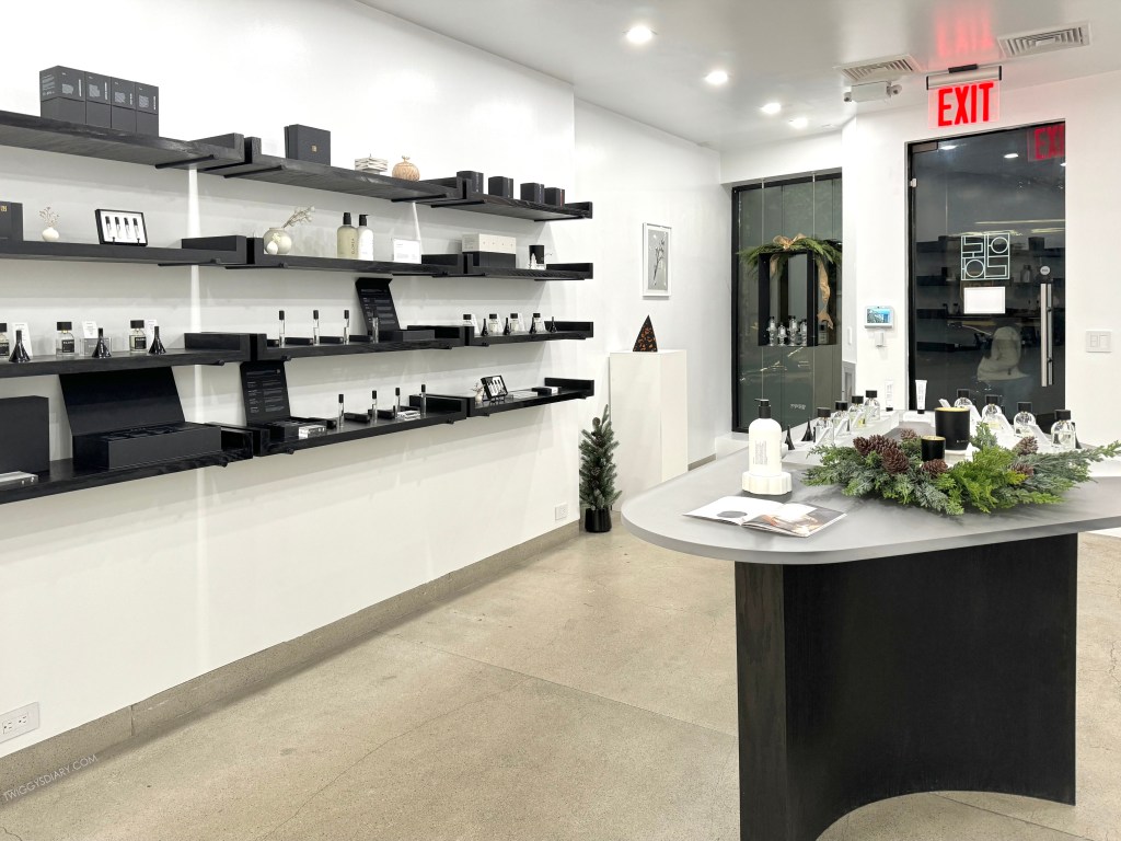ELOREA位於紐約曼哈頓的Nolita區域,到達那裡時我才發現這是個香氛結合咖啡的概念店。走進去會先見到香水與香氛商品的展示區,整間店是以黑色和白色為基礎色調,因為聖誕節即將來臨而有些應景裝飾,另外有藝術品和畫作在角落處,整個環境是極簡、舒適且現代感的。