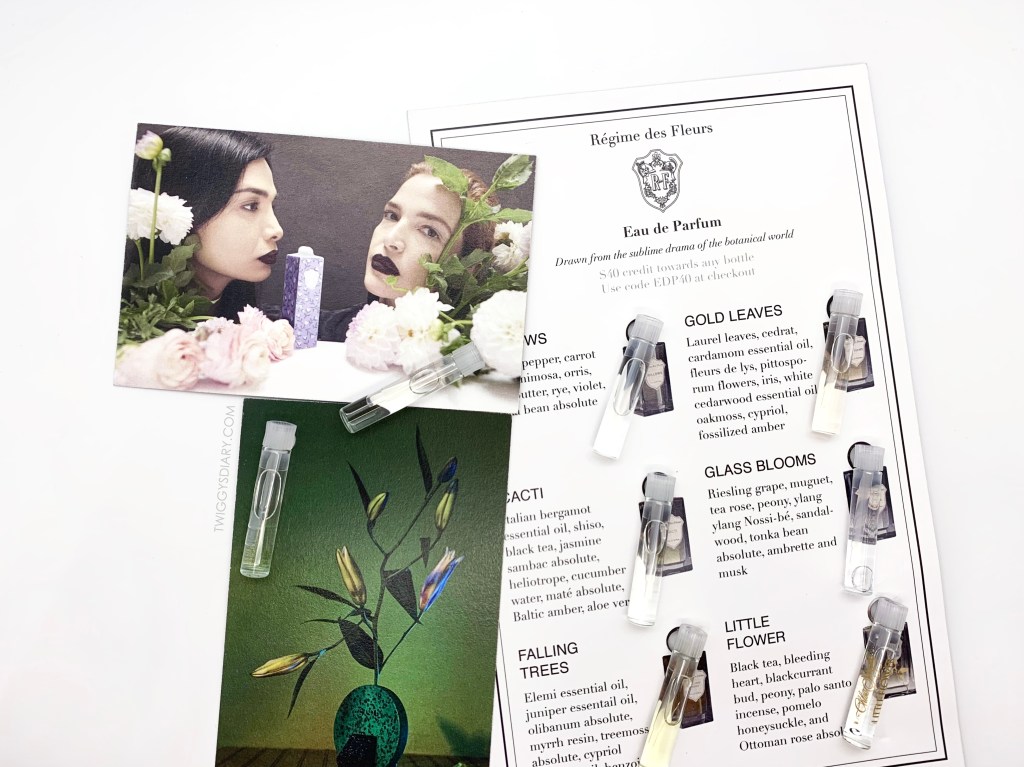 Regime des Fleurs成立於2014年,由電影製作人兼藝術家Alia Raza所創建。品牌的創意靈感來自大自然、藝術和歷史,重視創意與高品質。Alia曾在一次與網路雜誌Something Curated的訪問中說到:「我總是嘗試創造出別人所沒聞過的香味⋯⋯我不想再創造出另一個像Fracas的晚香玉香水,我甚至不想要創造一個聞起來像晚香玉的晚香玉香水⋯⋯我討厭『嗅覺是回憶的連結』這個陳腔濫調、無意義的說法,我的作品和記憶與懷舊無關,它不是明信片。」似乎對Alia來說,香水就是藝術,而創一瓶香水最重要就是創意,從Regime des Fleurs香水的包裝設計與平面廣告就能看得出Alia對畫面與設計感的要求。而真正讓Regime des Fleurs受到更多人注意的是他們找來了在獨立電影和實驗性電影圈裡相當知名的女明星Chloë Sevigny一起合作,創造了香水Little Flower,Chloë Sevigny的仇世風格與厭世臉讓她在時尚圈有不小的地位,經常出現在雜誌封面的她,居然肯跟一個沒什麼知名度的獨立品牌合作,這讓Regime des Fleurs立刻成為許多時尚媒體的寵兒。